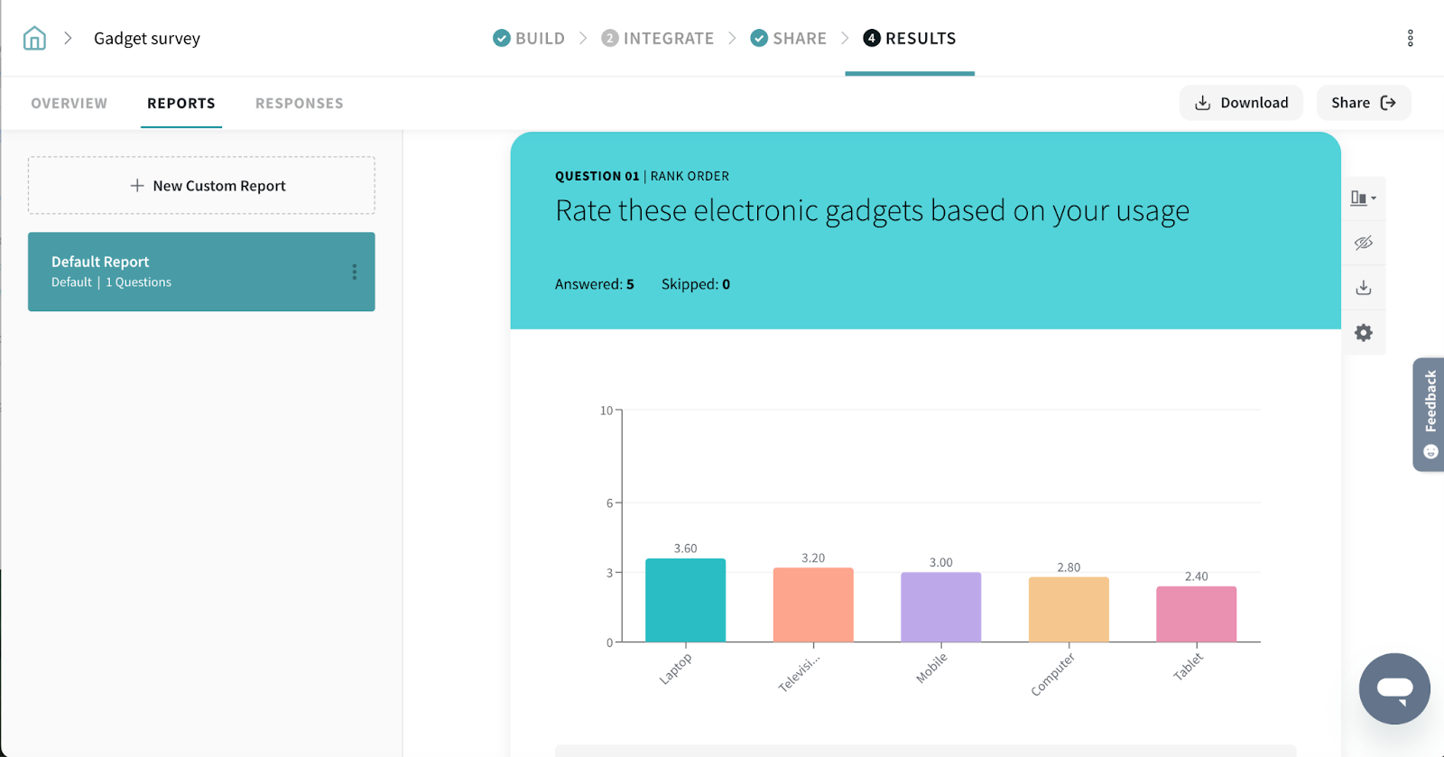 1. Create a rank order question with multiple answer choices and share it with your respondents.